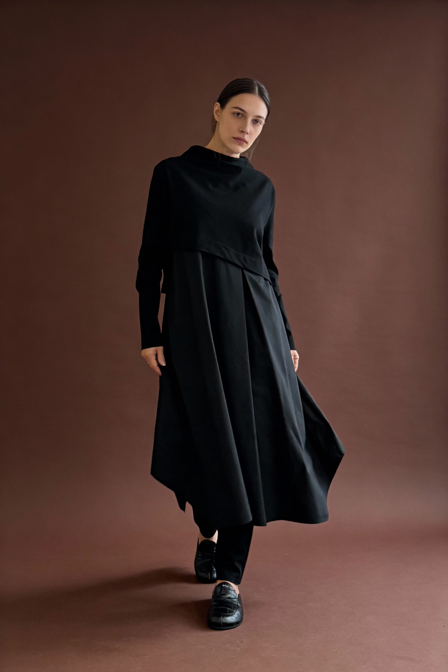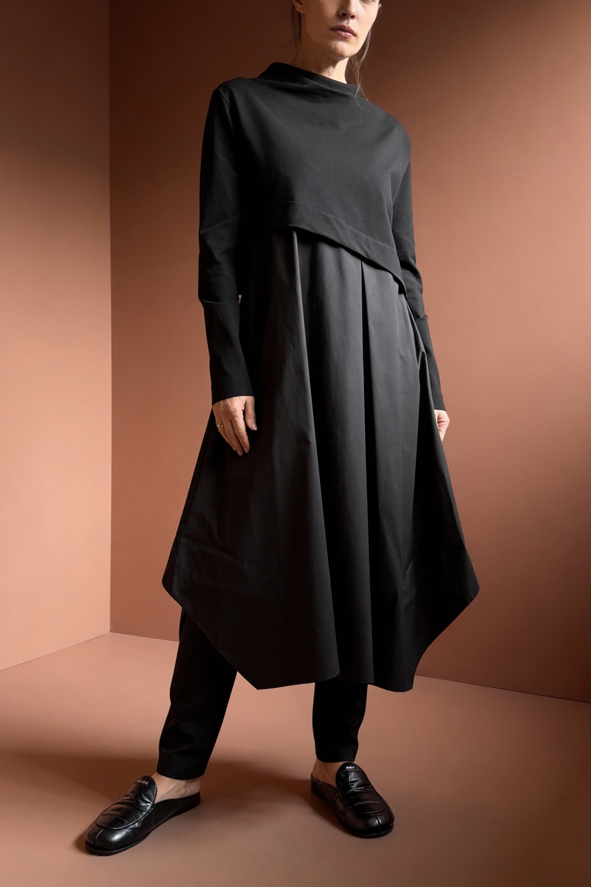 Abito lungo doppio tessuto di Soho-T. Manica lunga.